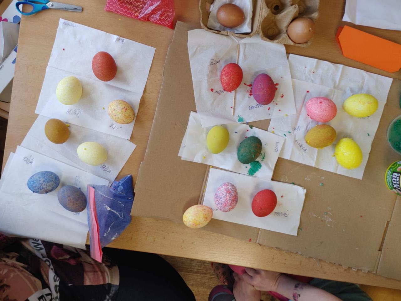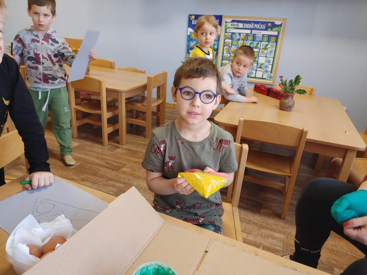 Ve třídě tužky Aničky i myšky Bublinky děti tvořily velikonoční vajíčka, zeleného zajíčka, s vajíčky i cvičily a dobrůtky na "zajíčkově cestě" hledaly. Také zahradu jarně zdobily.