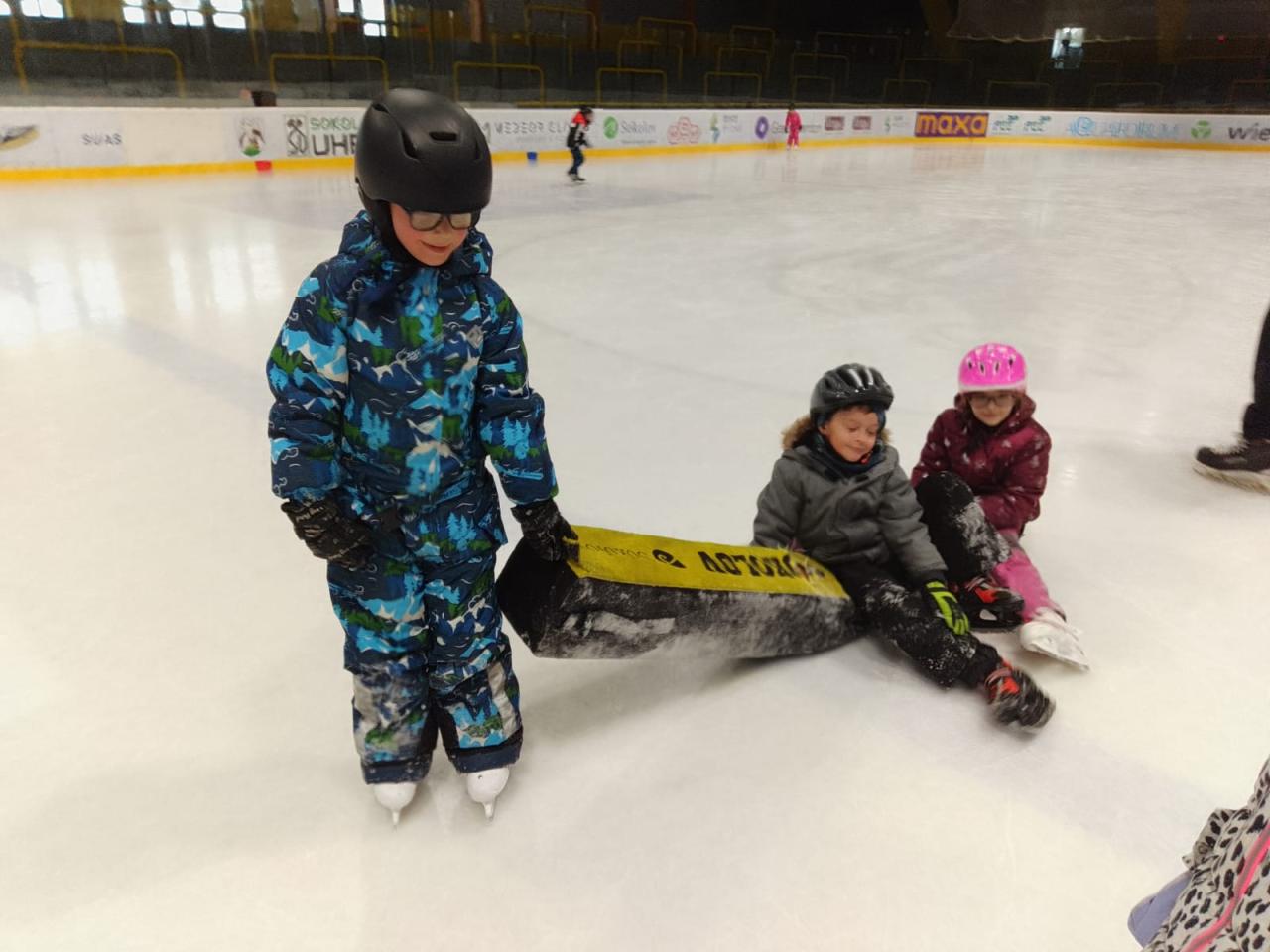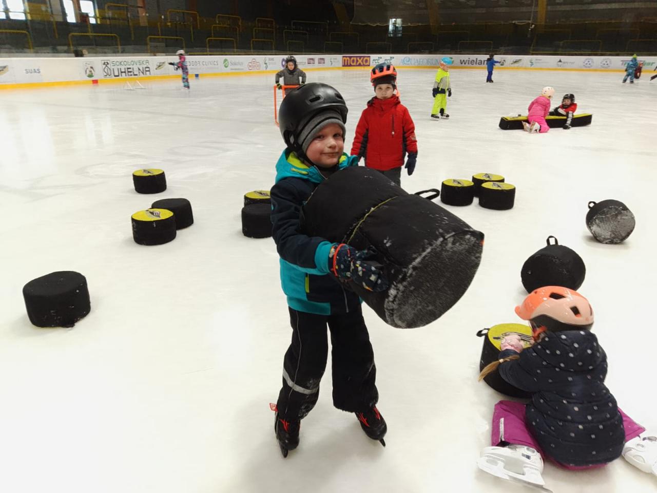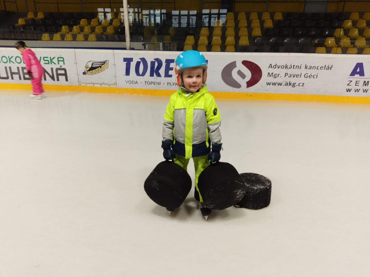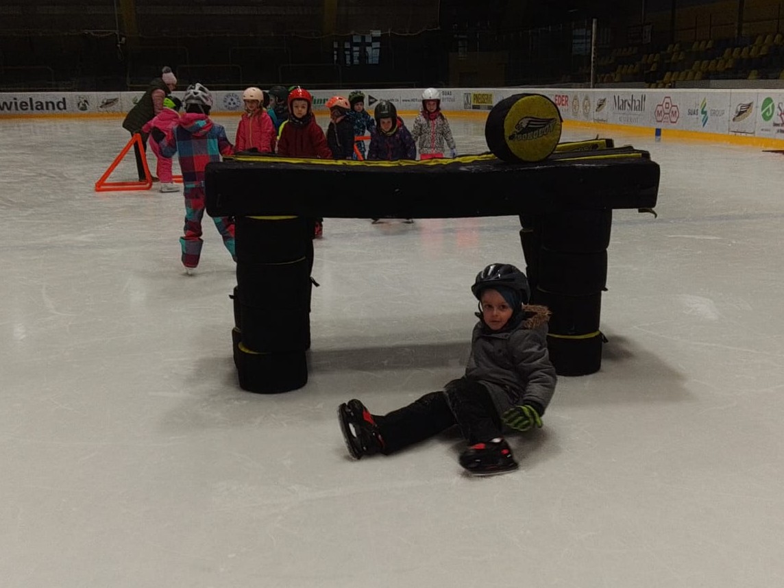 Tentokrát jsme na ledě měli i molitanové puky a mantinely.