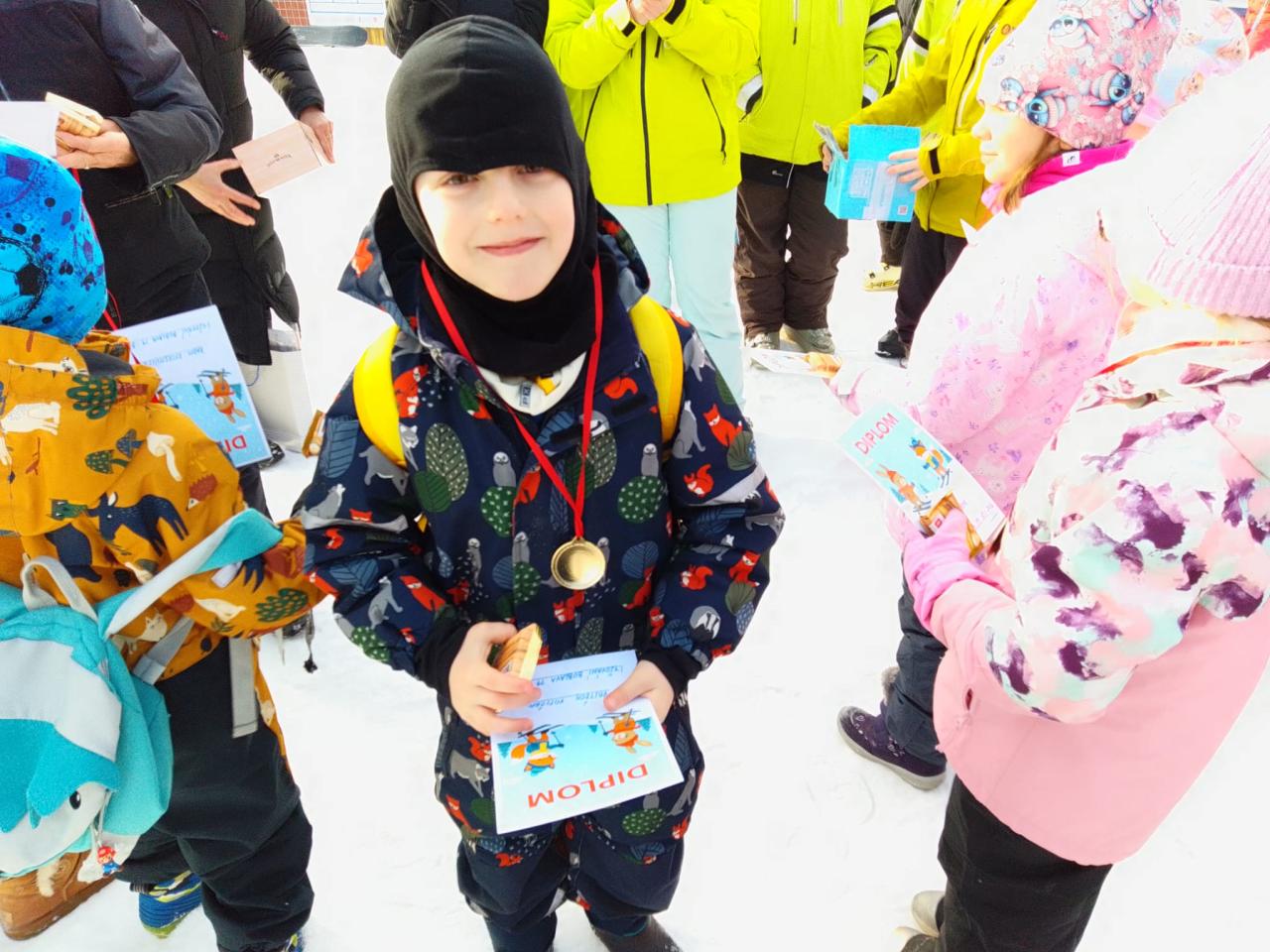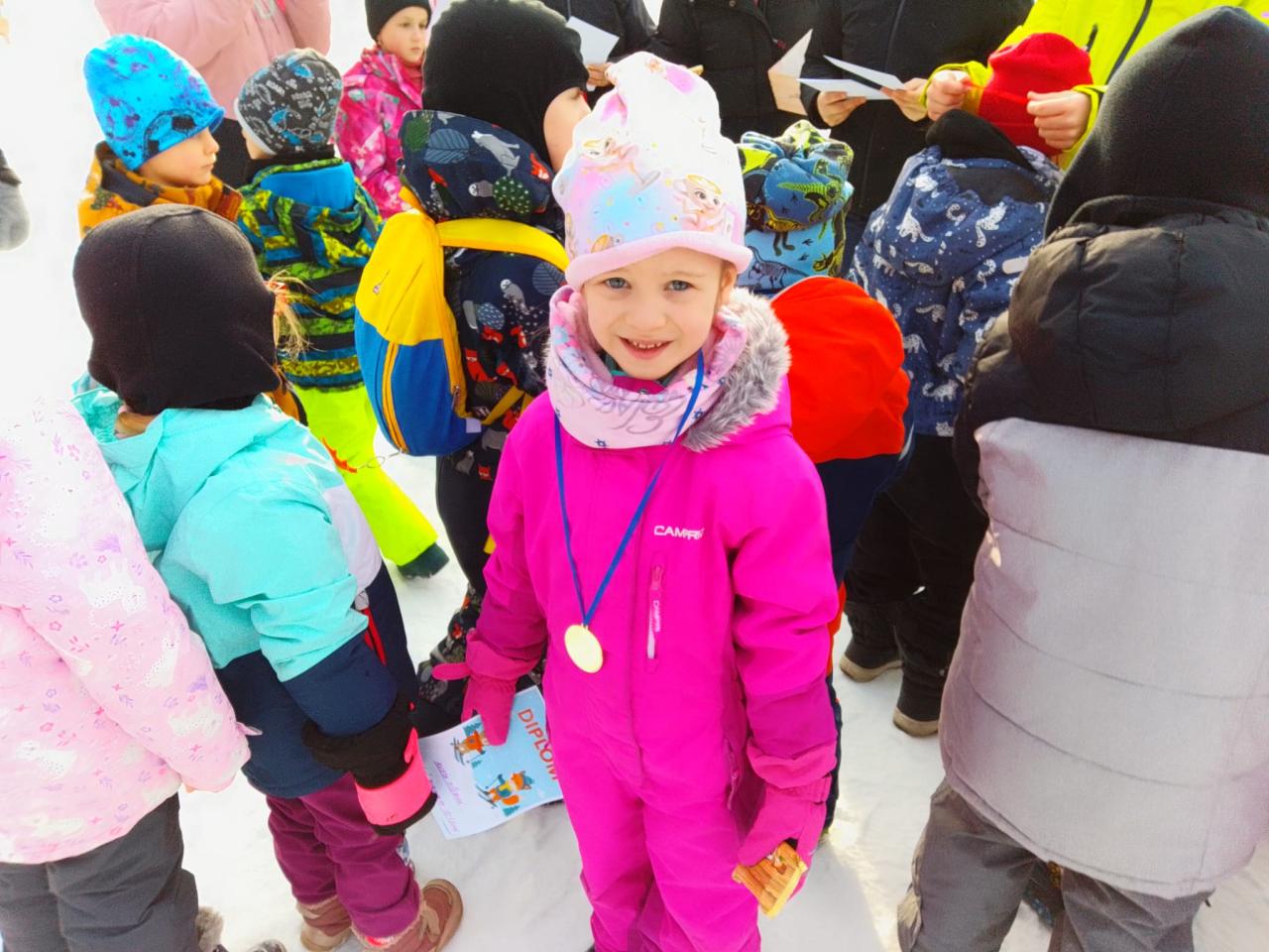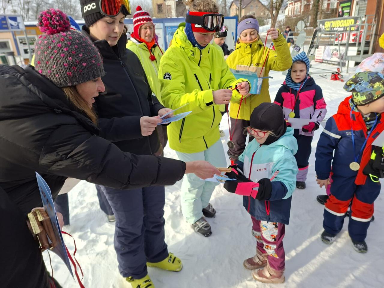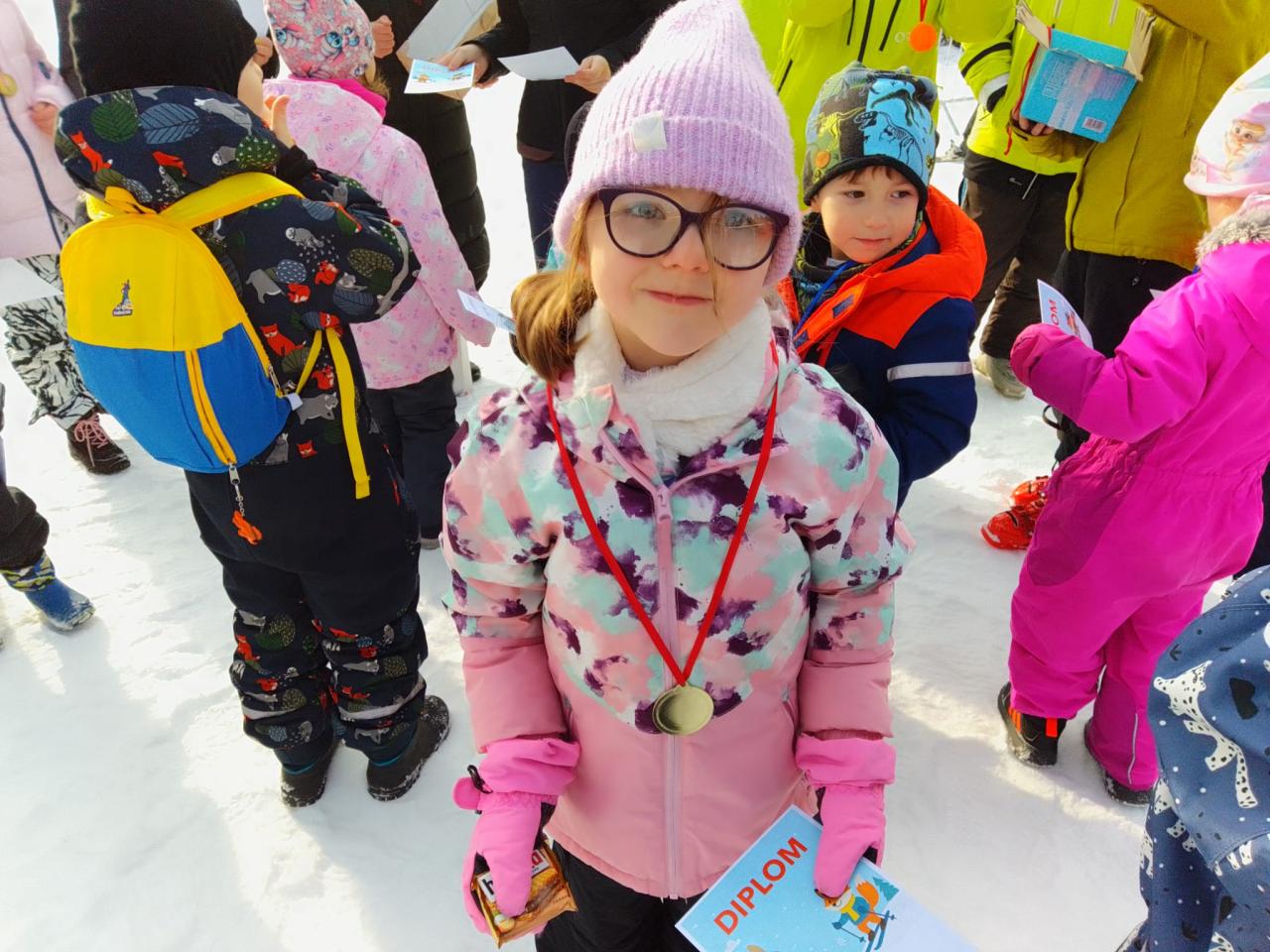 Lyžařský týden jsme završili závěrečným slalomem. Všichni si zasloužili medaili, diplom a sladkou odměnu. Na závěr "Ahóóój!". A zase příští rok společně - nebo třeba hned o víkendu s rodiči.