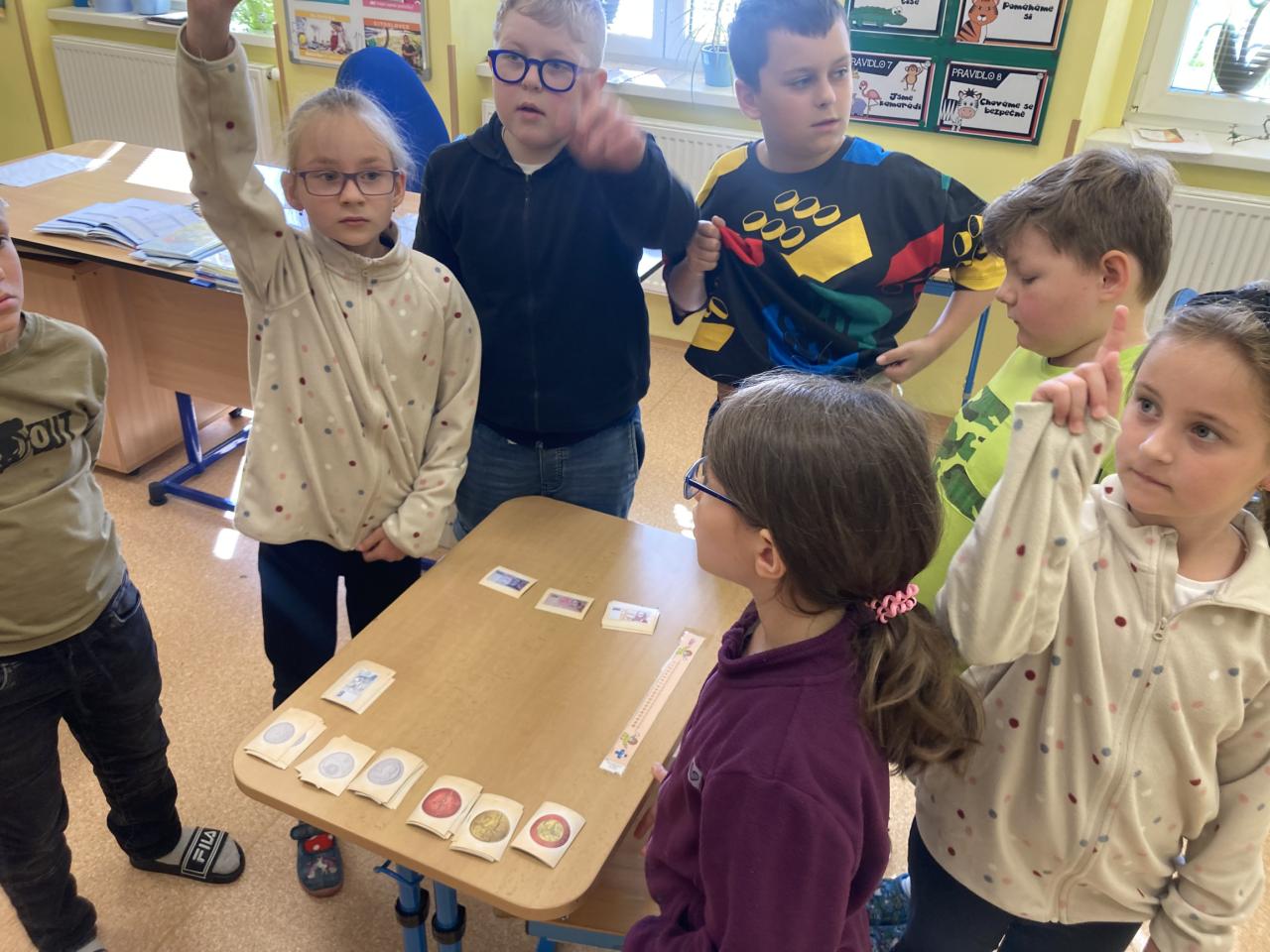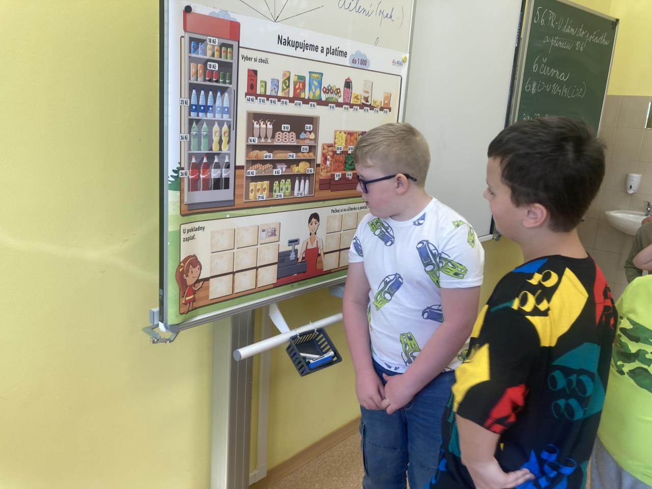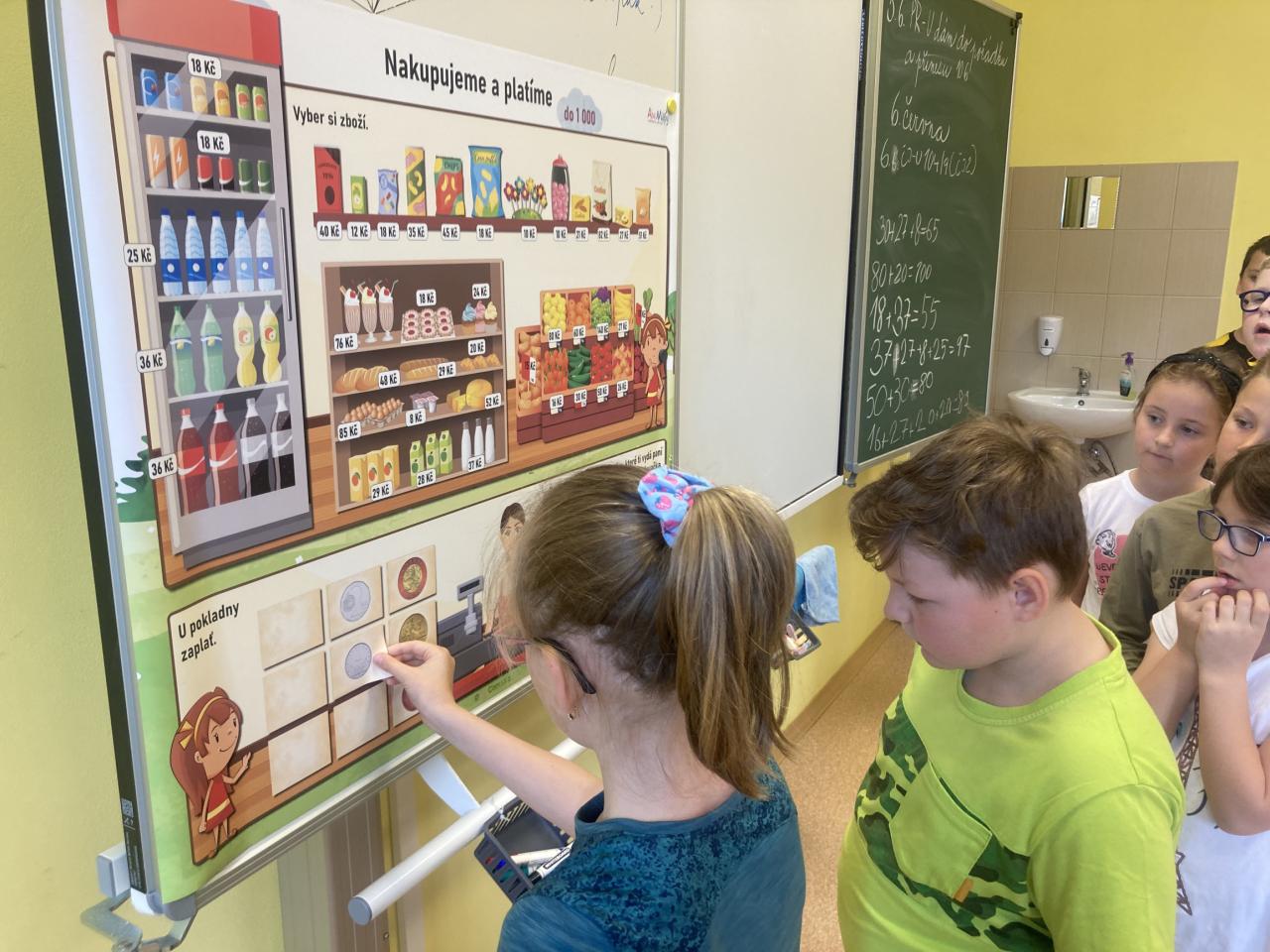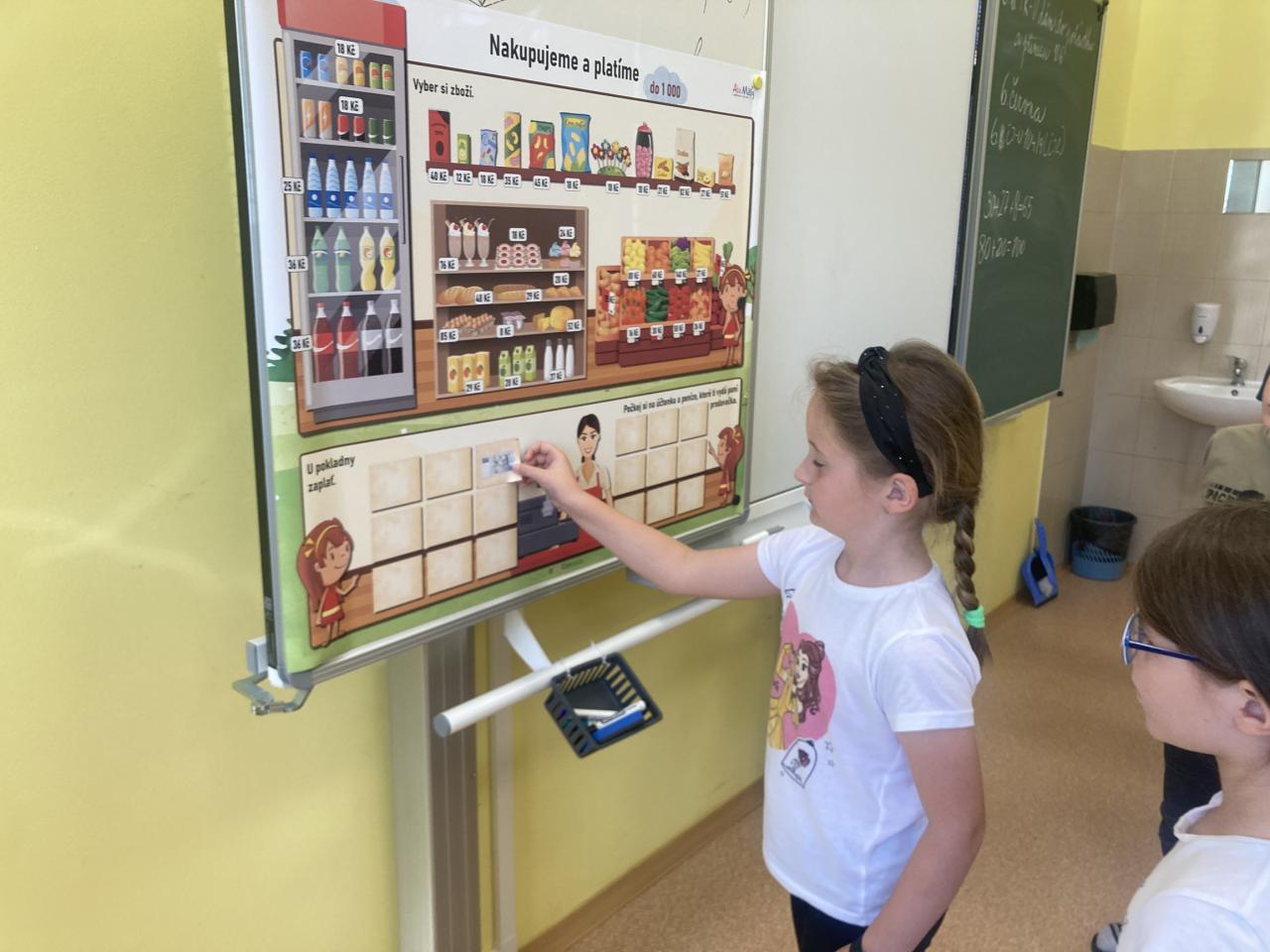 Nakupování potravin, počítání hodnoty nákupu, placení a vracení peněz bylo tématem dnešní hodiny matematiky v rámci finanční gramotnosti. Na nákup jsme měli limit 100,- Kč a při placení jsme měli na výběr mince i bankovky.
