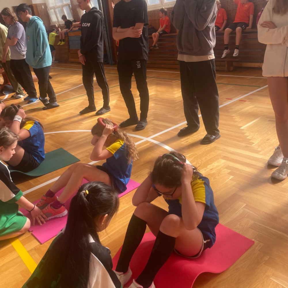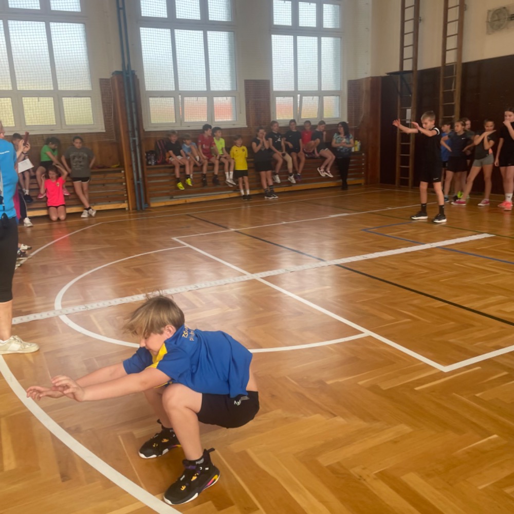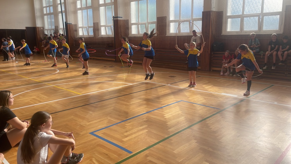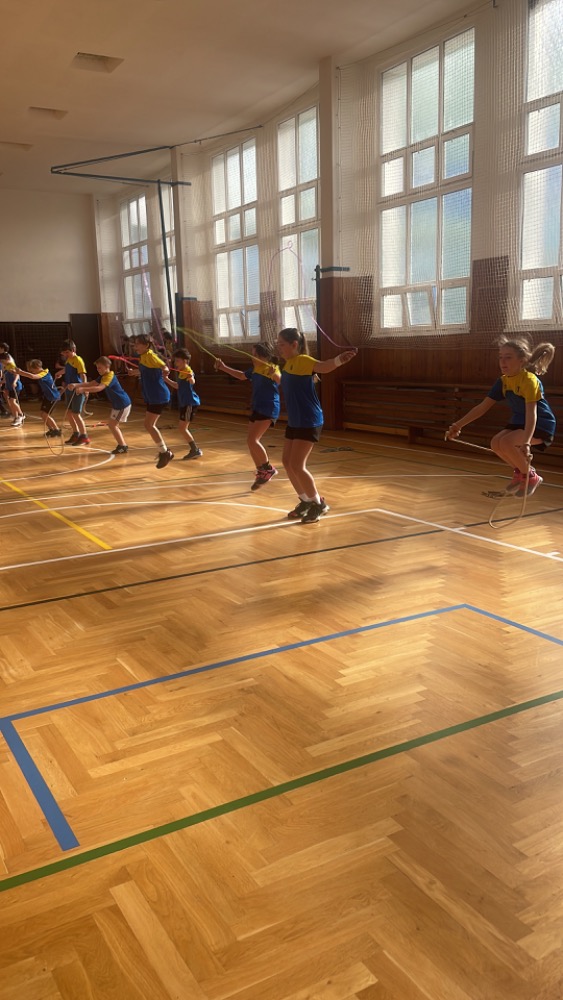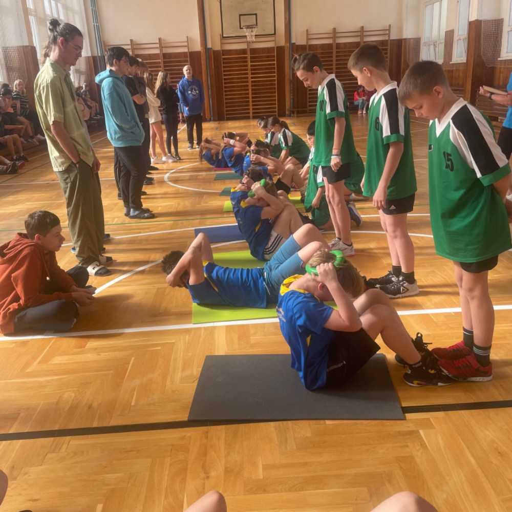 Na pětiboj jsme se náležitě připravovali a trénovali! Nejtěžší disciplínou pro nás byl přeskok švihadla po dobu 2 minut se 4 změnami - skákání dozadu, dopředu snožmo, vajíčko a střídavě. Nejlepší výsledek měla Sára M. (128). V hodu medicimbalem byl nejlepší Daniel S. (8,35m), v trojskoku měla nejlepší výkon Zuzana B. (5,15 m), lehy - sedy vyšly nejlépe Tomáši Z. (63) a dribloval nejlépe Jan N. (270 m).