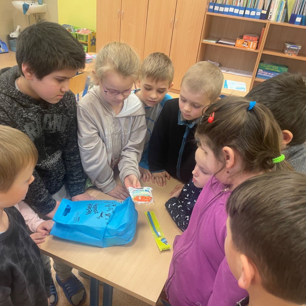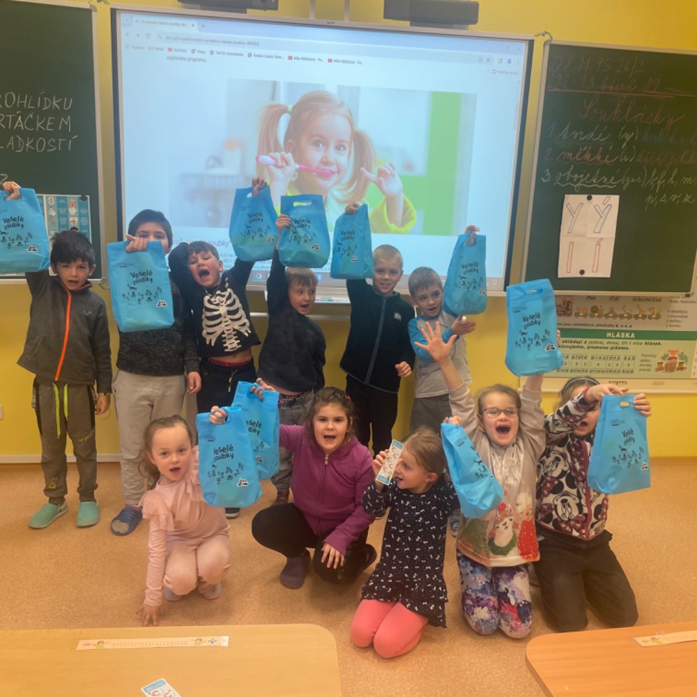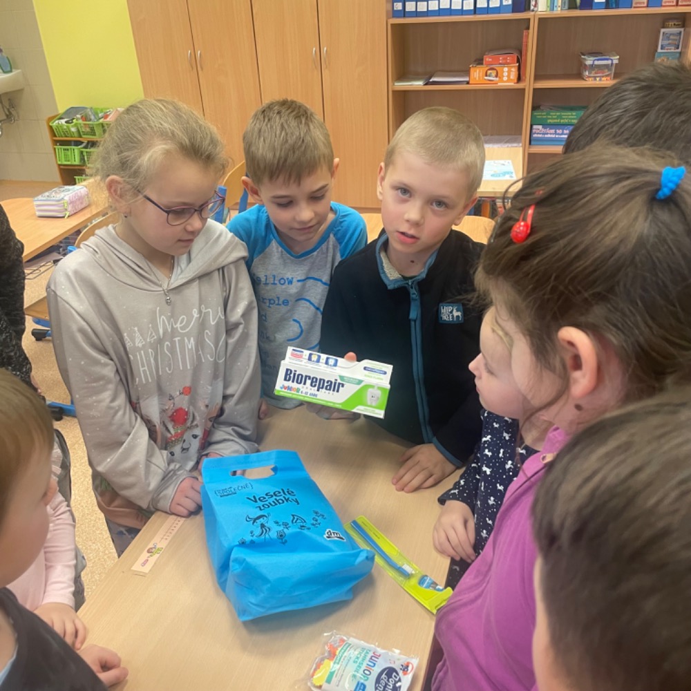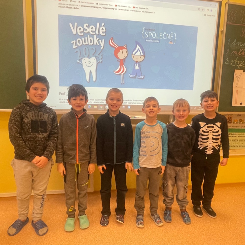 Naše škola se také zapojila do projektu “Pro lepší svět - SPOLEČNĚ s dm - Veselé zoubky“ Tento projekt je zaměřen na prevenci, péči a ochranu dětských zoubků.