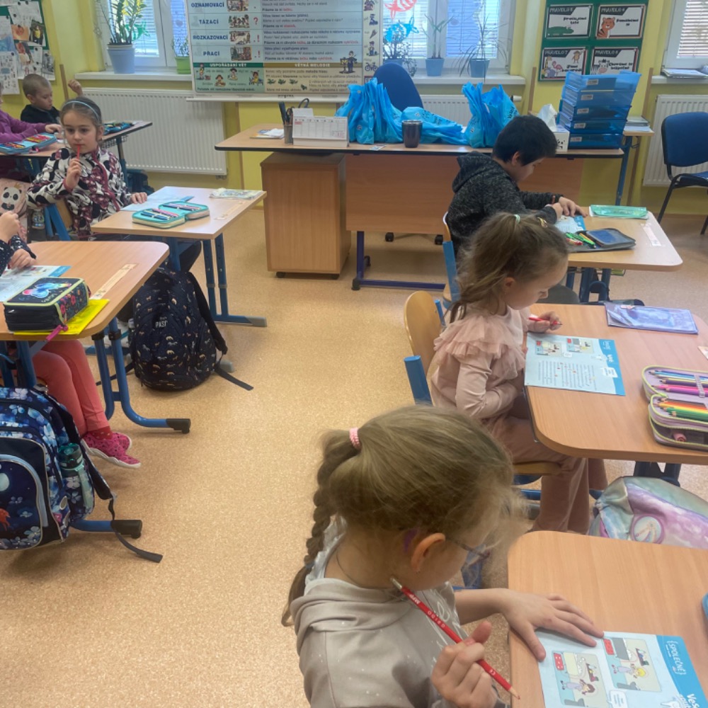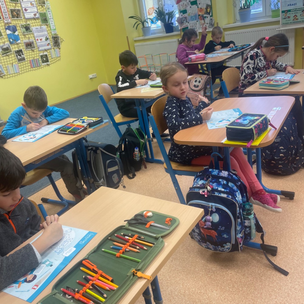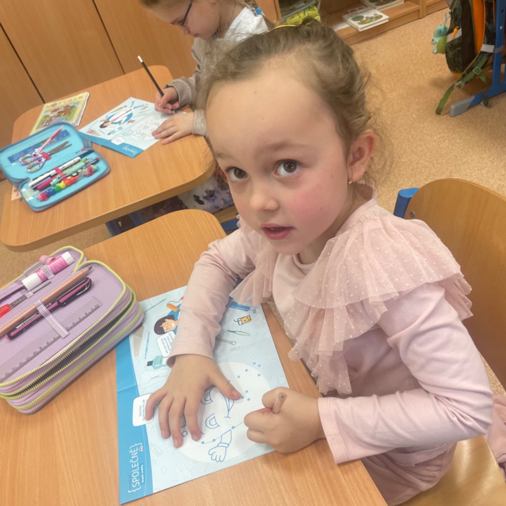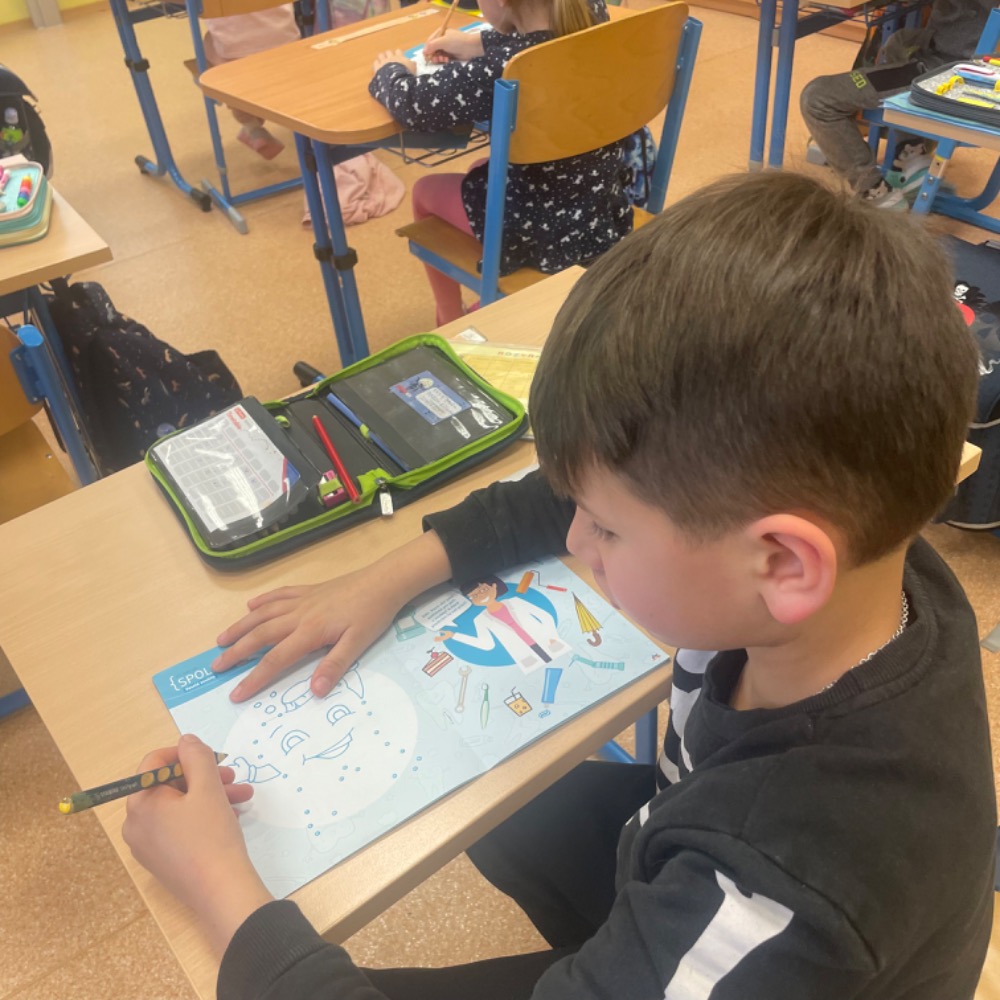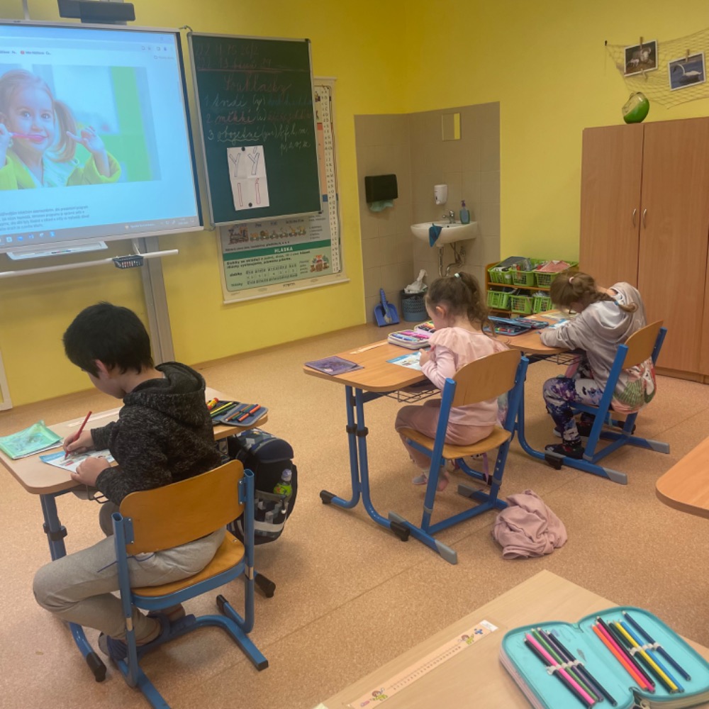 Poslechli jsme si kamaráda Hurvínka, vyprávěli si své zážitky z péče o chrup, vysvětlili si základní informace o zubech a nutnost pravidelných prohlídek u zubního lékaře, ukázali si správné čištění i další péči, zahráli si domino, luštili křížovku s tajenkou. Slíbili jsme si, že o své zoubky budeme opravdu řádně pečovat. Naši prvňáčci byli moc šikovní, a tak si za odměnu odnesli balíček připravený společností dm, samolepku a pochvalu v notýsku.